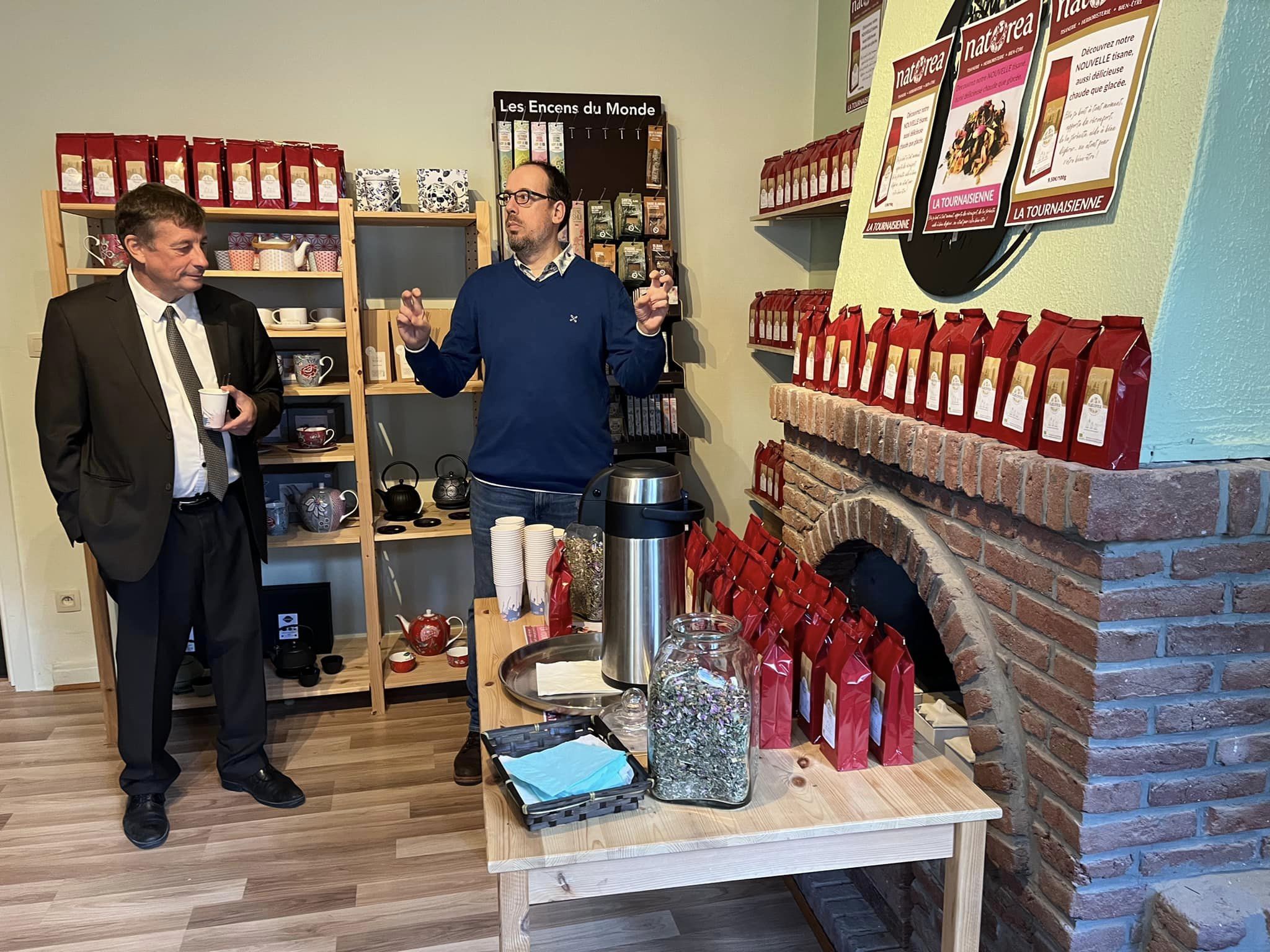 Pour l’occasion, nous avons reçu Monsieur le Bourgmestre Delannois, Madame Mitri, échevine du commerce. Quelques jours plus tôt, nous avions reçu Madame Liétar, échevine du Tourisme et Madame Ladavid 1ere échevine. Tous ont marqué leur intérêt pour cette jolie tisane et nous les remercions beaucoup pour leur présence, soutien en ce moment important pour notre herboristerie.